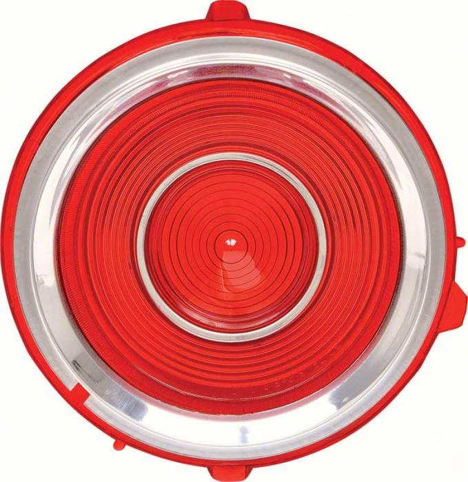 Reproduction rear tail lamp lens for 1970-73 Camaro Rally Sport (RS) models. Each lens is manufactured in quality injection-molded ABS acrylic lens material to factory specifications. Includes correct outer and inner chrome trim rings. Features correct SAE and "Guide" lettering for an authentic appearance.