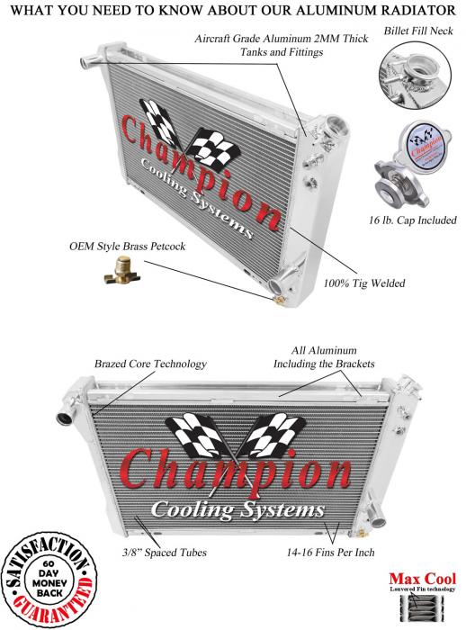 Champion Cooling brought the American Eagle series of radiators to market with the goal of not only making a product our customers would be proud to show off, but also designed to the highest standard while still making it very affordable. You could easily spend between $450 and $950 on a comparable two-row radiator from one of our competitors.
