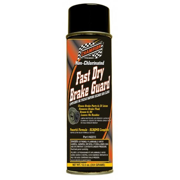 Champion Non-Chlorinated Brake Guard Cleaner removes Grease, oil, brake fluid and other contaminants from disc and drum brake components instantly. Cleans without disassembly. Degreases instantly, leaves no residue. Helps stop brake squealing and can improve braking performance.