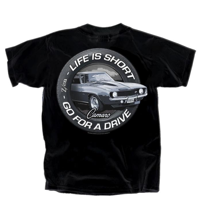 Life's too short for boring rides! This sleek t-shirt features a cool, circular graphic with a vintage Chevrolet Camaro taking center stage. If you appreciate timeless style and the thrill of the open road, this tee is calling your name. Get behind the wheel of style!