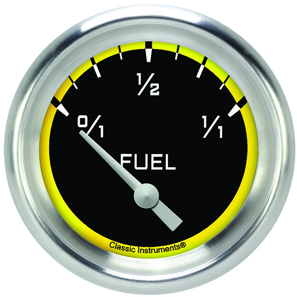 Classic Instruments Autocross Yellow 2 5/8" Fuel Gauge, 0-90 Ohm AX212YAPF: