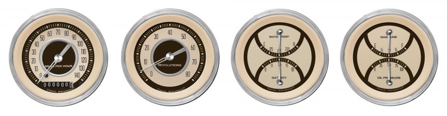 Nostalgia VT Series 3 3/8" Speedo, Tach, & 2 Duals with Stainless High Step Bezel Curved Glass Lens
