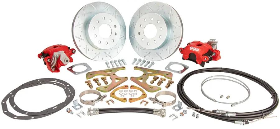 Make sure your 68-74 Nova stops securely and on a dime with this powerful rear wheel Disc Brake Kit. This comprehensive set includes 11" drilled and slotted rotors, powder coated red calipers, and cables included for maximum power and precision. Its 5 x 4.75" bolt pattern is compatible with Nova models of 68-74. Plus, the included external E-Brakes add a layer of safety and security when it comes to stopping performance. Get the reliable stopping power of part# 1012RWBK-SE-6874XDR and drive your 68-74 Nova with confidence.