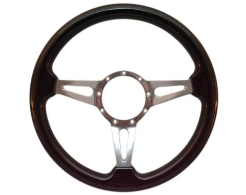 This S9 kit comes in walnut finish wood grip option with polished aluminum anodized center finish. It features a 14 in. diameter with a 2 in. depth for turn signal clearance. The grip thickness is 1.25 in. The Kit includes: hub adapter, C4…