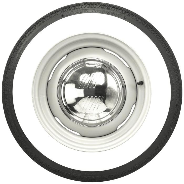 This product features a genuine wide whitewall sidewall style. This means that the bright white rubber is added directly to the tire sidewall during initial construction of the carcass, resulting in a truly integrated, high-quality product after vulcanization. Wide whitewall tires were a very popular choice from the 1930's through the end of the 1950's, and were eventually phased out of mainstream production by 1962. Originally, wide whitewall tires featured a bias ply construction, Coker Tire offers these tires in both original style bias ply and modern radial construction.