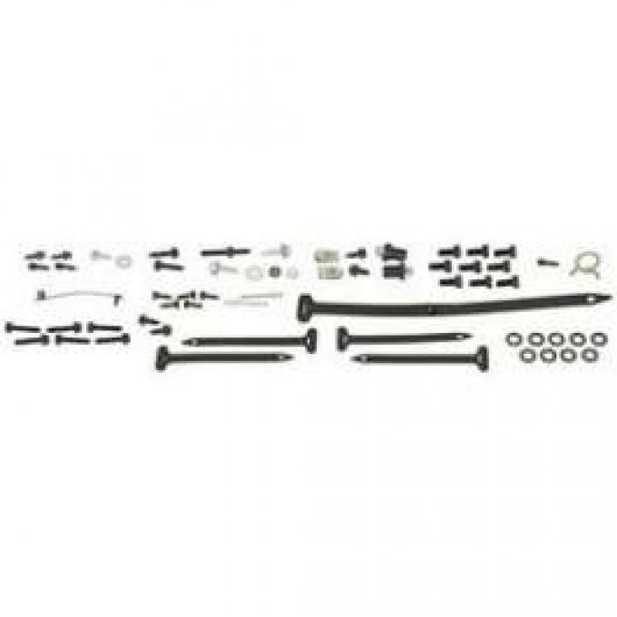 Correct hardware kit for mounting AC firewall box, condenser, heater hose grommets, relay, resistor and vacuum tank. 52 pieces in all