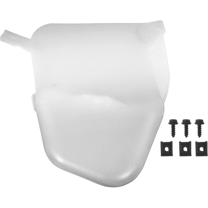 Reproduction radiator overflow jar designed for use on various Pontiac models. Each jar is manufactured in bloe-formed clear white plastic material same as original. Features correctly placed ADD and FULL lines replicating the original. Refer to part number # 491032 for cap with white lettering, or part number # 494939 for cap with Blue lettering.