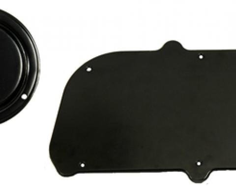 Quality die stamped steel plates block off blower motor and heater box/AC firewall openings. For custom applications with factory air conditioning. Includes reproduction blower motor cover and a custom block off plate with same appearance…
