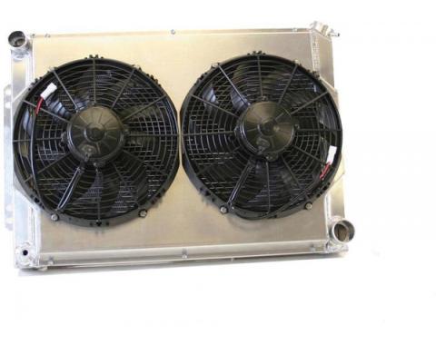 Replacement Performance Aluminum Radiator Cools Down Even The Hottest Engines All Aluminum In-Line Construction For Best Air Flow 1.25 Cooling Tubes Bolts Right In Place Of Stock Radiator Dual Fans 3000 CFM Total Air Flow For Manual…