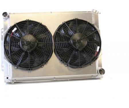 Our Economy series radiators are designed for car enthusiasts looking for an affordable cooling solution for their classic car that is nearly stock condition. Though some muscle cars or modified vehicles with a higher horsepower rating may require one of Champion Cooling’s three or four row radiators, these economy series radiators are built with two-row brazed aluminum cores that are tig-welded to aluminum tanks with approximately 14-16 louvered fins per inch, a brass petcock, and all are designed with aircraft grade aluminum. The tubes are 3/4” thick with a 1 1/2” core. In most cases this all aluminum design allows for stronger wider tubes that enable a two row aluminum radiator to outperform a three row copper brass of equal dimensions, while also being more affordable and lighter weight. We recommend this series for most applications with 500 horsepower or less.