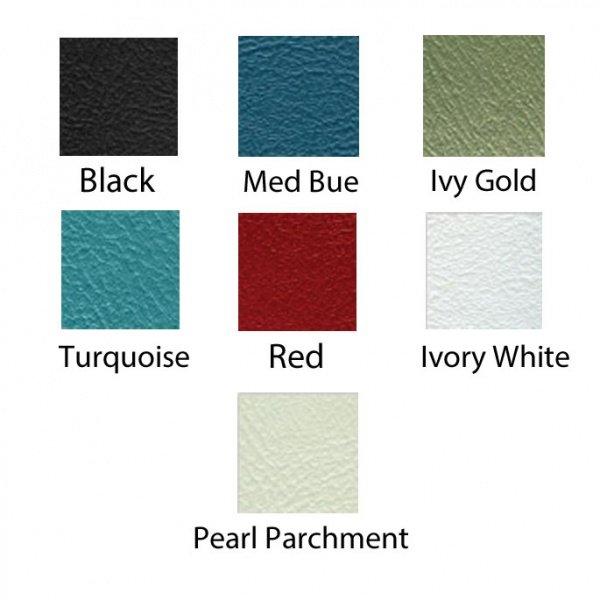 Offered in Black L-2295, Green Gold L-3307, Medium Blue L-3297, Parchment L-3295, Red L-3048, Turquoise L-3046 and White L-2305.