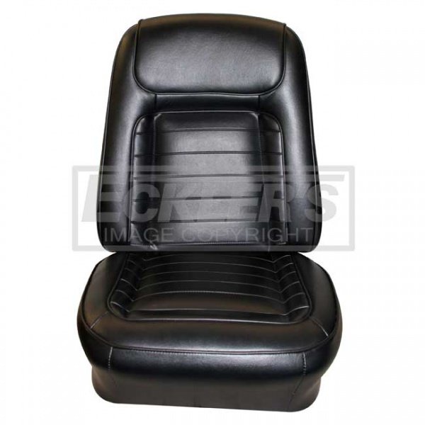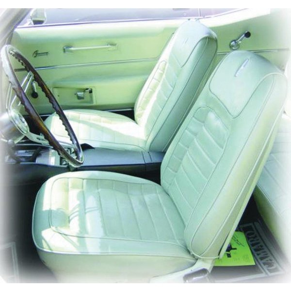 Distinctive Industries 1968 Camaro Deluxe Seat Upholstery is a correct reproduction of the original. We offer the original Madrid grain in 32 oz. vinyl, with the correct horizontal dielectrically heat sealed pleats as well as being sewn as original.