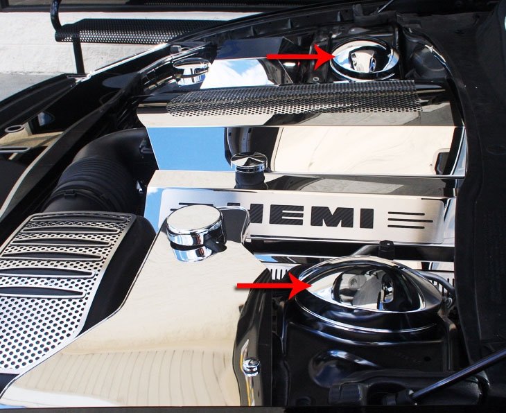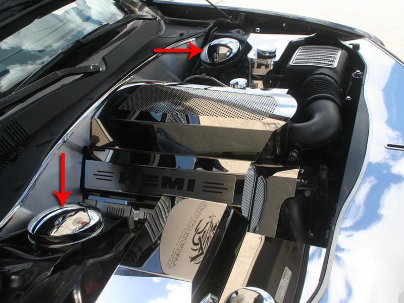 Dress up your Dodge Charger or Chrysler 300 with our Chrome Shock Tower Dome Covers. These trim pieces are designed to fit all 2011-2015 Dodge Charger or Chrysler 300, over the stock shock tower dome and add a clean stylish look to your cars engine bay.