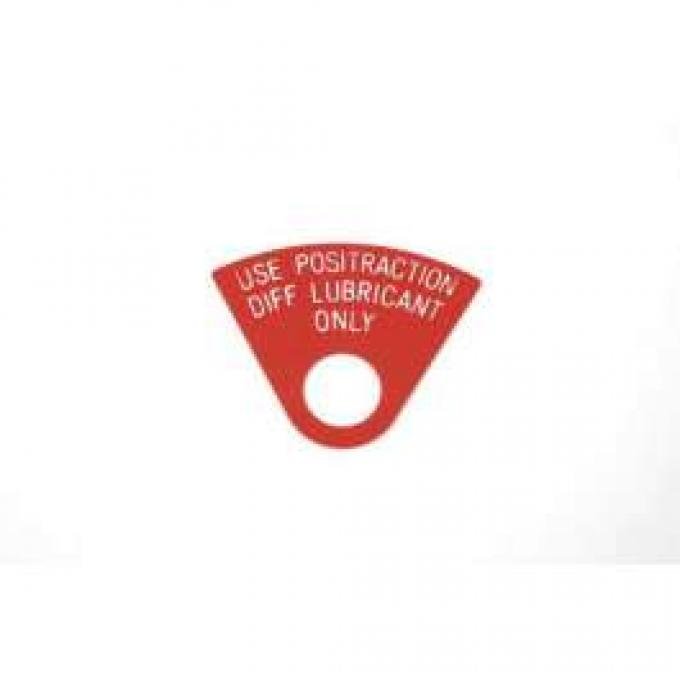 Correct red fan shaped tag for rear end filler plug. Hole diameter is correct for original 68-69 rears, requires special fill plug available separately (75-13678)