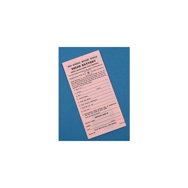 Camaro Battery Warranty Certificate, 1967-1968