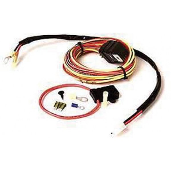 Complete the installation of your dual electric fans easily and professionally with this Be Cool wiring harness kit. The dual fans draw 25 amps so using this kit ensures having the proper wire gauge and relays to handle that amount of current. The thermostatic fan control is pre-set to turn the fans on at 195?F and off at 175?F. This kit includes the thread-in thermo sending switch, relays, in-line fuses, color-coded wiring with terminals attached and detailed wiring instructions.