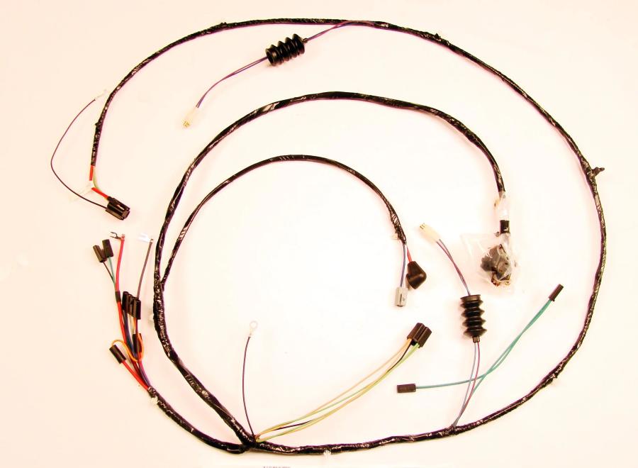 Factory Fit engine harnesses are manufactured according to the original General Motors specifications. Each part number is fully assembled, taped and ready to install upon arrival. This harness will plug into the firewall in the original location, and will follow original routing in the engine compartment. A combination of the engine and front light harness accomplish most functions under the hood of an early GM vehicle. This harness is built for an original alternator with an external voltage regulator.