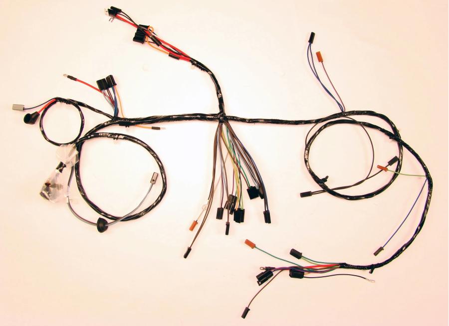 Factory Fit engine harnesses are manufactured according to the original General Motors specifications. Each part number is fully assembled, taped and ready to install upon arrival. This harness will plug into the firewall in the original location, and will follow original routing in the engine compartment. A combination of the engine and front light harness accomplish most functions under the hood of an early GM vehicle. This harness is built for an original alternator with an external voltage regulator.