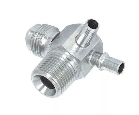 Intake vacuum fitting with non threaded power brake booster take-off only. Plated.