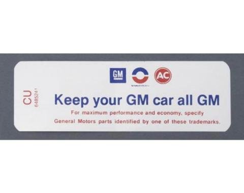 Reproduction Of Original Bright Mylar Decal Self-Adhesive Correct Colors & Fonts Underhood decals offer that final touch to any restoration. Sure, you could leave them off; but, wouldn't it look nice with fresh decals for your friends…