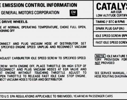 This decal denoted the engine tuning specifications and instructions as well as emission information (when applicable). The decal is pressure sensitive and features a convenient "peel-n-stick" backing. Simply clean the area where it…