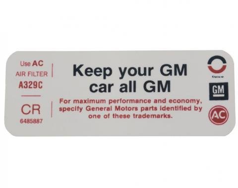 Reproduction Of Original This Camaro reproduction service instruction air cleaner decal has been manufactured to original factory specifications using today's modern manufacturing techniques. You will find the quality & appearance will…
