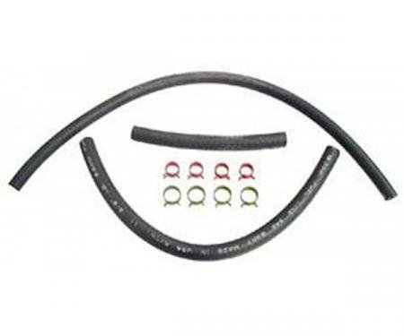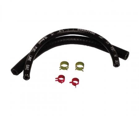 Correct diameter fuel hoses for front and rear connections. With four correct green fuel hose pinch clamps.
