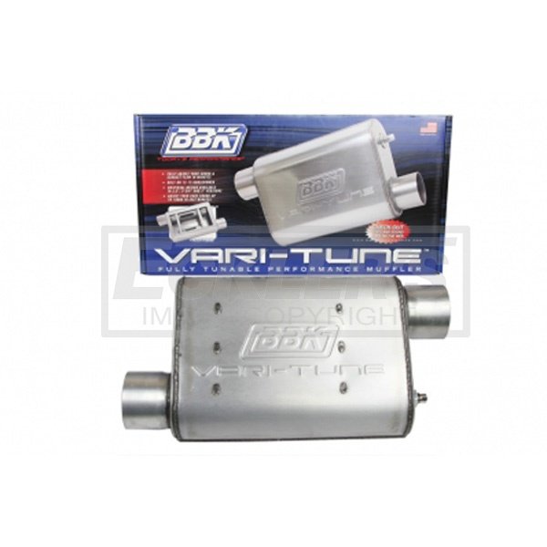 High-Performance Universal Muffler Rectangular Case, 3 Inlet Diameter, Offset Chambered Internal Construction Steel Construction With Aluminized Finish Closed End Cap, Standard Outlet Without Tip Camaro universal Vari-tune mufflers are a great performance addition for any Camaro. American designed and built, these performance mufflers are one of a kind, offering a muffler that can be adjusted for sound and horsepower by just moving the adjustment screw under the car. The unique design of this superb muffler allows side-to-side tuning to cut out the drowning or resonance that often happens when at a low rpm. Available aluminized or in stainless steel and in 2.5, 2.75, and 3.0, these mufflers are offered in various offsets to insure proper fit on most aftermarket and OEM applications. When you are in the market for a new high-performance muffler, invest in a BBK universal Varitune muffler.