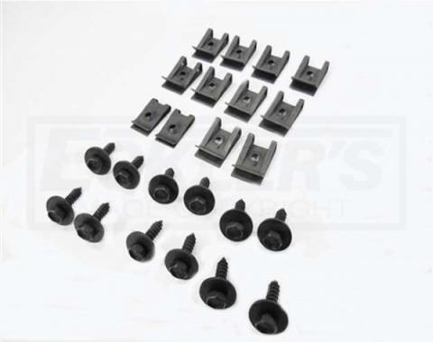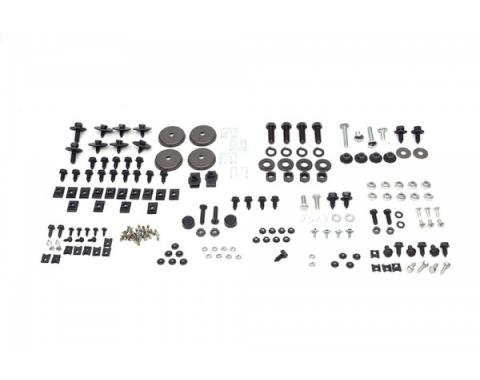 Most technically correct basic front end sheetmetal and grille assembly kit available! Black oxide indented head bolts with washers for front end assembly, cage nuts, fender cup washers, hood and fender bolts and grille mounting hardware.