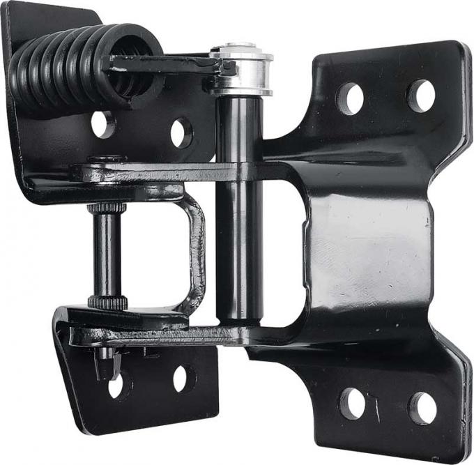 Reproduction of the original door hinge assembly designed for use with the applications listed below. Each hinge is manufactured in high quality cast steel, accurately replicating the original factory design for strength, durability, and fitment. Features four mounting bolt holes on each side for proper alignment and installation, just like the original GM hinge. Includes a pre-installed tension spring to ensure smooth door operation.