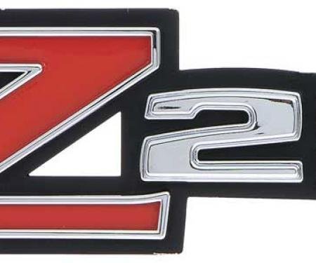 Heavily textured chrome diecast with correct gloss black enamel surround exactly as original. Sharp and crisp letter definition. Plated mounting bracket and hardware included. Officially Licensed GM Restoration Parts.