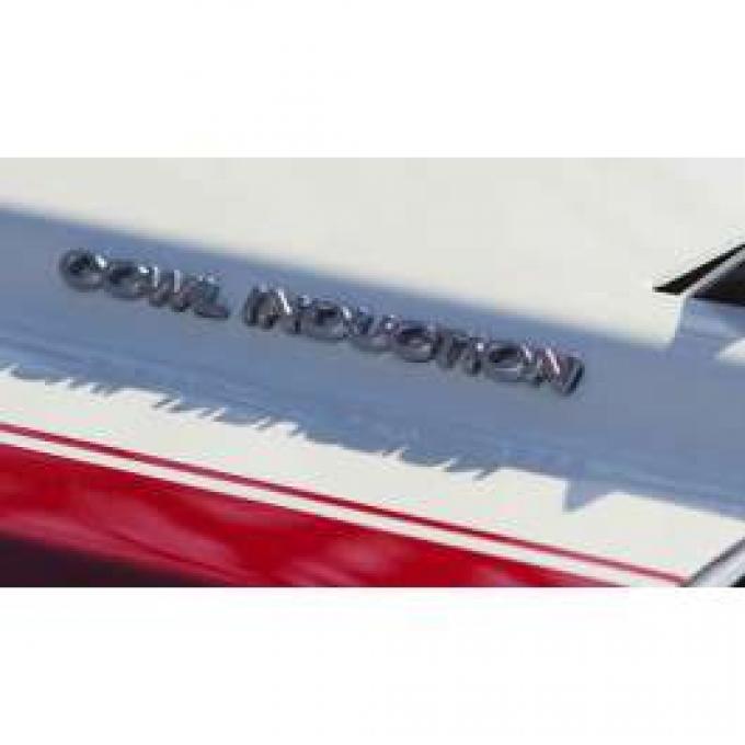 Correct Pin Location Two-Sided Tape Pre Adhered Like Original Can Be Used To Upgrade Other Style Cowl Hoods Reproduction Of Originals Set Of 4 Includes The Words, Cowl, And,Induction These reproduction cowl induction hood emblems have been manufactured to original factory specifications using today's modern manufacturing techniques. You will find the fit, finish and function will work superbly for your restoration.