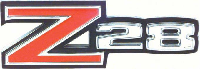 Reproduction of the original Z/28 rear spoiler emblem designed for use on 1970-73 Z/28 models. Manufactured in zinc die-cast metal, each emblem features correct colors that replicate the original in quality, design, and appearance. This emblem can be installed on all 1970-73 Camaro Z28 models with a 1 piece low-style spoiler, or the 3 piece rear spoiler. This emblem installs directly into the center of the rear spoiler. Includes mounting studs for installation.