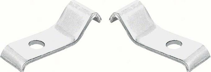 Reproduction of the original front bumper guard brackets designed for use on 1967-68 Camaro models. Each bracket is manufactured in stamped steel replicating the original in fit and design. Sold in pairs.