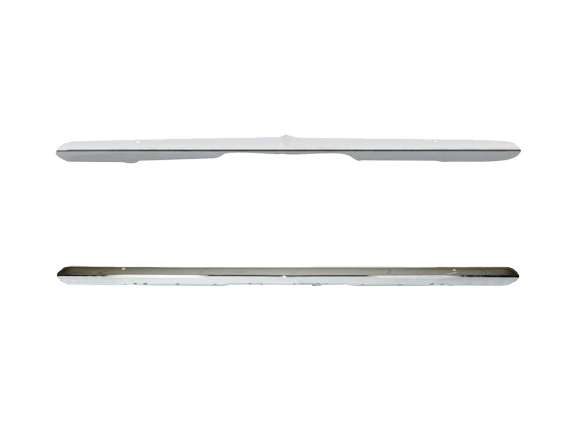 Instructions: Remove the existing bumper by unbolting it from the frame brackets. Align the new chrome bumper with the factory mounting points. Install hardware loosely at first to allow adjustment. Once aligned with quarter panels and trunk edge, fully tighten bolts and inspect for flush fitment and spacing.