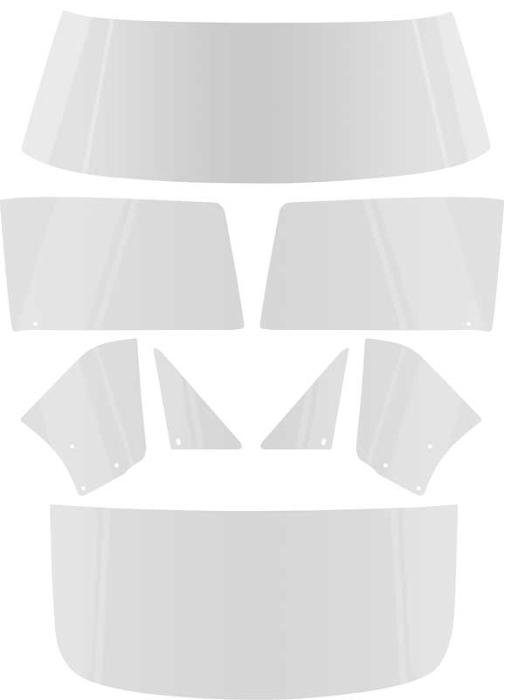 Reproduction glass set for 1967 Camaro and Firebird models. Manufactured as an economical way to replace broken, scratched, or delaminating or cloudy original glass on your GM F-Body project car. Features the correct curvature, configuration, shape and size as well as the appropriate mounting holes on the side glass when applicable. Date code or original style markings are not an included feature of this reproduction glass kit.