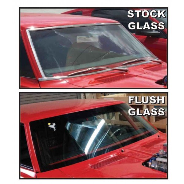 Finally...classic fit, flush mount glass for first generation hard top Camaros! What is flush mount glass? Basically, a larger piece of glass, designed to fit within the OE opening leaving only a 1/8” gap. The new glass eliminates the need for trim or weather stripping and instead uses a FRIT band, primer and super adhesive urethane to fasten into place. The specific size and shape of the new glass paired with the install method allows for an OE fit with no body modifications. Each set of flush mount glass has been manufactured to mimic OE standards including the faint green hue rooted in every piece. Not known to most but the green hue is what makes our glass officially recognized by the Skin Cancer Foundation for blocking 99.9% of harmful UVA rays. Just as with newer cars, each windshield is laminated safety glass while the rear pieces are tempered.