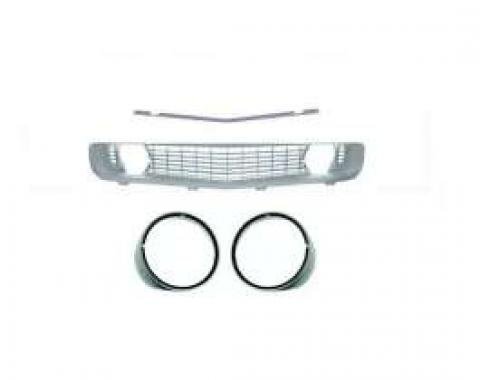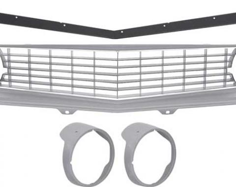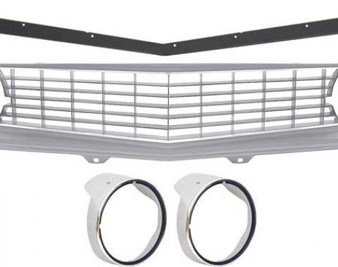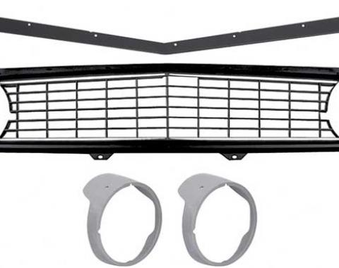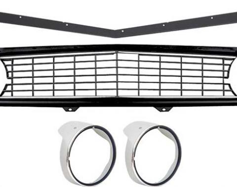Reproduction Of Original Features: Plain Headlight Bezels Without Chrome & Black Trim Ring Requires: Painting Silver Headlight Bezels Black To Match Grille Includes: 2 Headlight Bezels, Grille & Upper Grille Stiffener Your 1969…