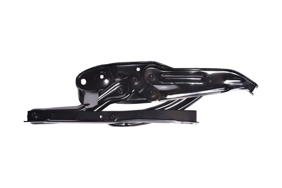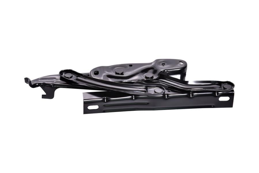 Instructions: Secure the hood to prevent movement. Remove the existing hinge by unbolting it from the hood and inner fender. Position the new hinge in place and loosely install bolts. Adjust for proper hood alignment and gaps, then tighten all fasteners. Install the spring (sold separately) and test the hood’s motion to ensure smooth, even operation.