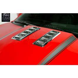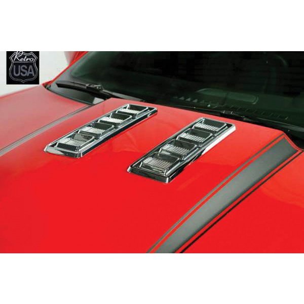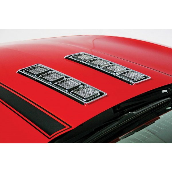 1969-Style Ice-Cube Trays Are Made From Thermoformed TPO Plastic Chrome-Tech? Chrome Laminated Finish Will Never Rust, Crack, Chip Or Peel Easily Installed Without Any Permanent Modifications To The Car Self-Adhesive No Drilling Required Retro USA's 68'-69' styled Hood Vents give your Camaro a nostalgic and aggressive look. Hood Vents are chrome-plated injection molded ABS with painted flat black accents and uses stainless steel wire mesh. Pre-taped with 3M? attachment tape plus pigtails insure easy and accurate installation. No permanent modifications are required.