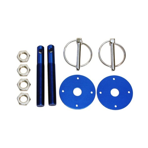 These heavy duty hood pins will secure your hood or trunk yet still allow them to be quickly opened or removed. Every kit includes 2 hood pins, two torsion flip over clips, two self adhesive scuff plates, and the necessary hardware.
