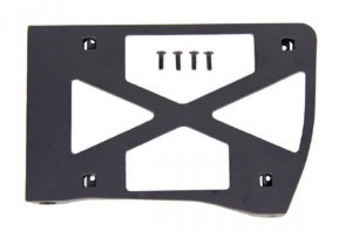 Diecast RS headlamp door backing plate for 67 and 68. LH (driver) side. Includes four black coated phillips machine screws for door cover attachment.