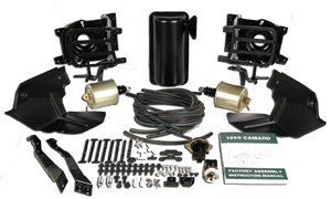 69 Camaro RallySport Hideaway Headlamp System Kit Packaged in a single double wall heavy duty logo box. Complete and technically correct. Contains all mechanical and needed electrical and vacuum component parts of the Hideaway Headlamp option, including hardware. USA assembled RH and LH headlamp assemblies include: Headlamp housing with installed hinge plate bumper, hinge plate, door cover backing plate, bellcrank, bellcrank support bracket, over center spring, correct sealed beam adjusting screws and spring, all bushings and necessary hardware. Includes a 1969 490 page Assembly Manual with an illustrated 17 page section on installation. Includes Fenderwell Templates to modify existing standard front fenderwells. Includes headlamp switch, vacuum relay assembly, core support door stop brackets pair, two vacuum actuators, vacuum tank, actuator shields pair, color coded system hose kit, two actuator clevis pin sets, actuator rear support brackets-pair, with two clamp brackets, and a complete hardware installation pack.