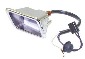 Superior reproduction. Beautiful show chrome diecast. Includes bulb, correct color wiring with rubber wiring grommet, crimped harness sleeve, correct style ground connector and wiring connector installed. RH (passenger) side only. Officially Licensed GM Restoration Parts.