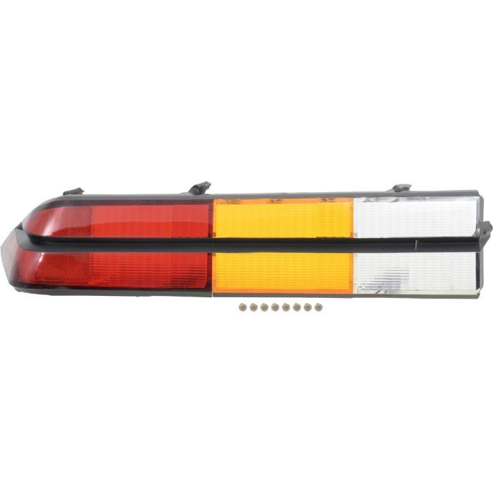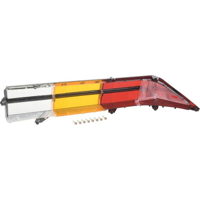 Reproduction tail lamp lens for 1980-81 Camaro Z28 models. Each tail lamp assembly is manufactured in quality injection molded acrylic lens material to factory specifications. This tri-colored tail lamp assembly features a horizontal black stripe (correct for Z28 models), black perimeter accents and all correct SAE markings on the lens replicating the original in quality and appearance. Refer to part number # 5969307 for tail lamp housing (available separately). For the LH, driver side.