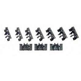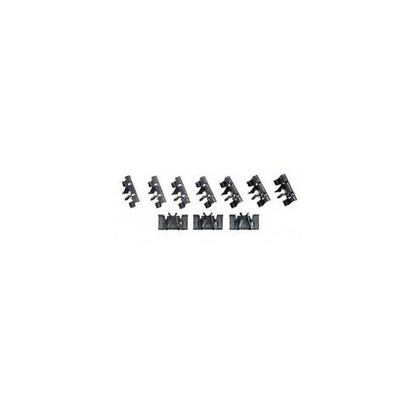 Set of 10 special spring steel clips hold convertible rear pinchweld molding tight to body.