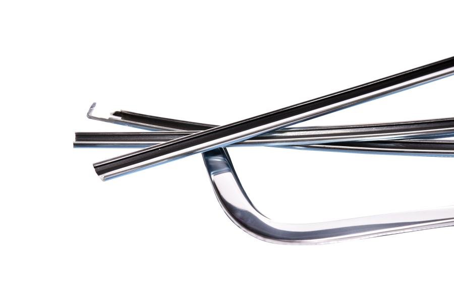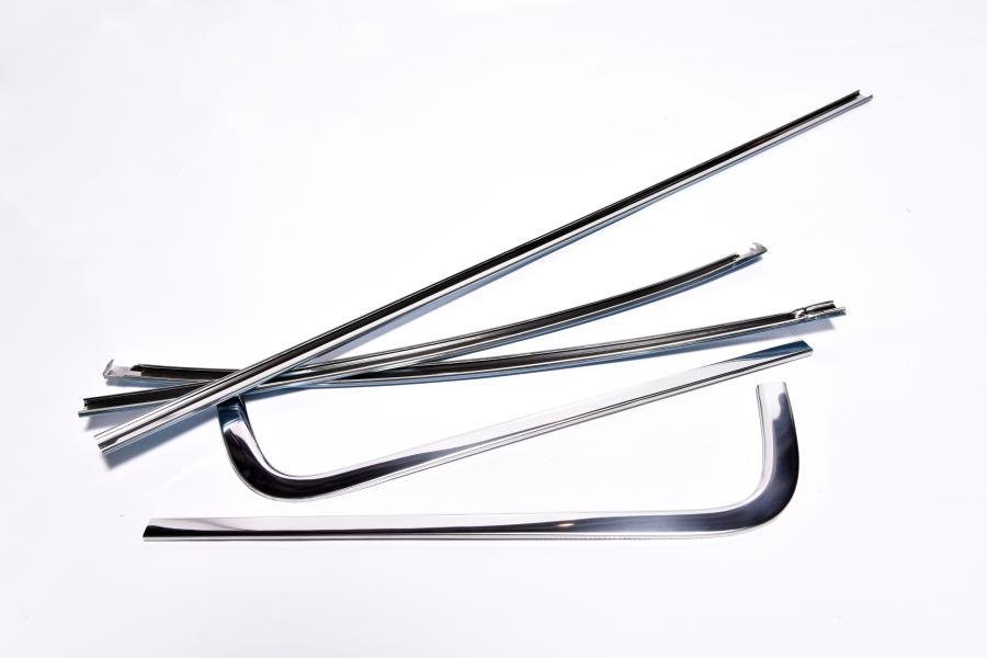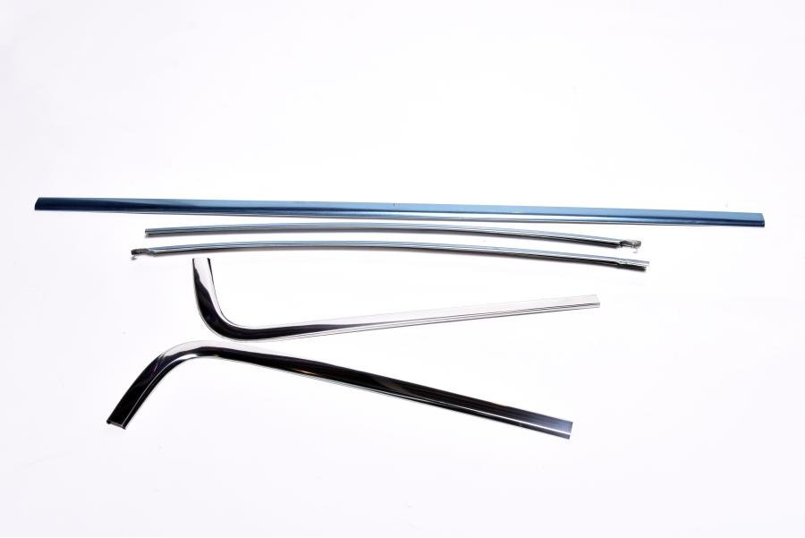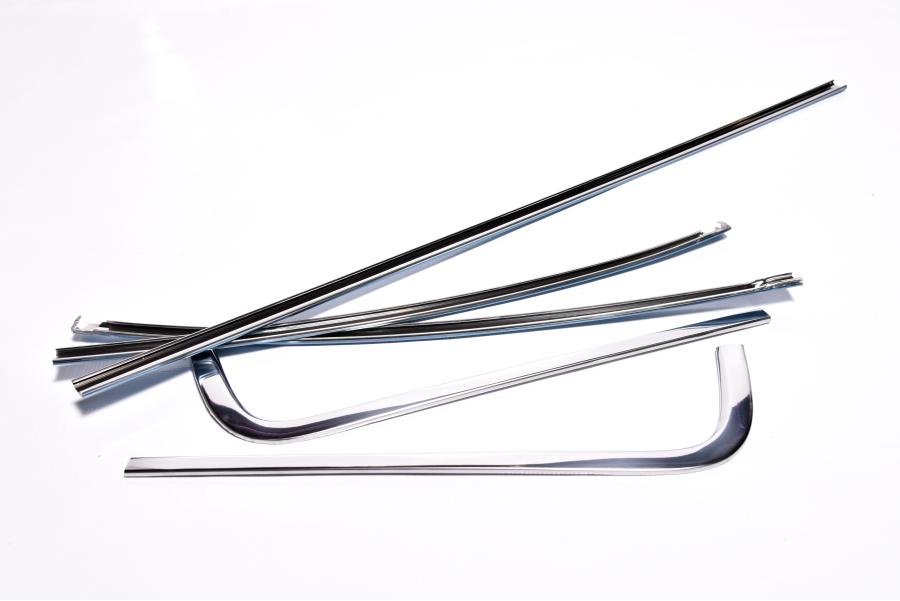 Instructions: Ensure all original or new trim clips are properly installed around the rear window opening. Carefully align each moulding piece and press it into place over the clips, starting from the bottom and working upward. Use a soft trim tool to avoid damaging the polished surface. Confirm a secure fit and consistent alignment around the window perimeter.