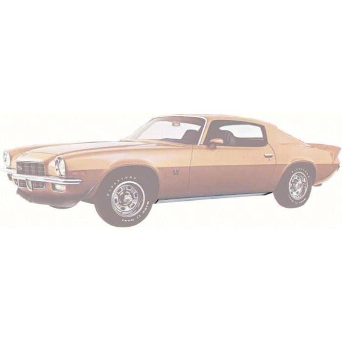 Reproduction lower rocker panel molding for 1970-75 Camaro and 1970-81 Firebird models. This molding attaches directly to the lower rocker panel below the door and extends from the front wheel well to the rear wheel well. Manufactured in quality stamped aluminum, each molding is approx. 3" wide. Includes all necessary mounting hardware.