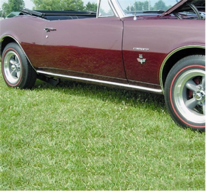 Show Quality reproduction replaces discontinued high quality GM part exactly. Original material with OE thickness and high polish finish. Correctly smoothed and contoured ends. Includes galvanized stamped steel mounting strip and all hardware. (Note: Order in multiples of 34 for discount and free shipping). Officially Licensed GM Restoration Parts. GM Part # 3904540 ** Due to shipping regulations, additional handling charge applies **