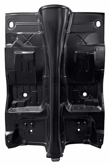 Reproduction of the original floor pan assembly designed for use with 1970-1974 Camaro and Firebird models. This premium reproduction offers restoration enthusiasts the highest OE quality and authenticity. This version includes the floor pan bracing and torque box, eliminating the need for patchwork repairs. Complete floor assemblies provide a cleaner restoration with no patched seams, delivering superior strength and durability compared to piecemeal sheet metal repairs. Save time and labor costs by welding in one complete panel instead of multiple smaller pieces. Finished in black EDP coating for rust and corrosion prevention.